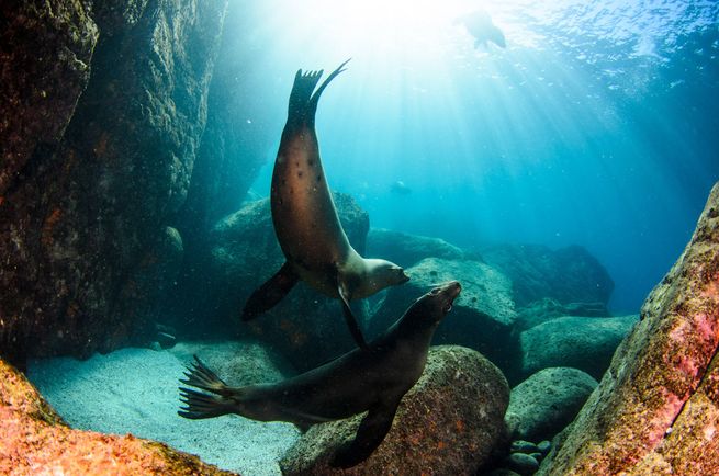 The Sea of Cortez is often called the “world’s aquarium” because it offers year-round, nutrient-rich, biodiverse diving. Diving the Sea of Cortez offers encounters with whale sharks, sea lions, hammerheads, manta rays, and vibrant reefs with huge schools of fish and fascinating underwater macro life.
